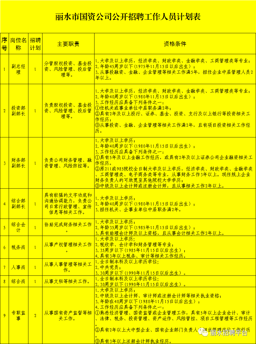 1.丽水市国资公司公开招聘工作人员计划